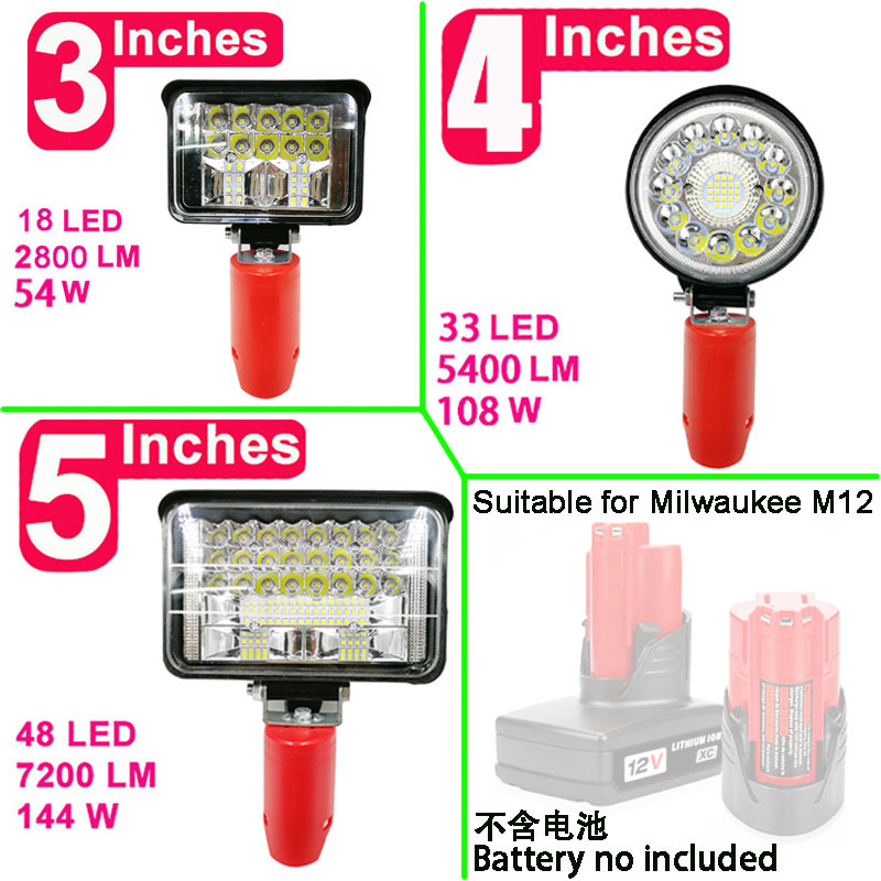Lampu kerja LED lampu sorot lampu mobil berkemah luar ruangan cocok untuk Milwaukee mivoch 12V baterai lithium M12