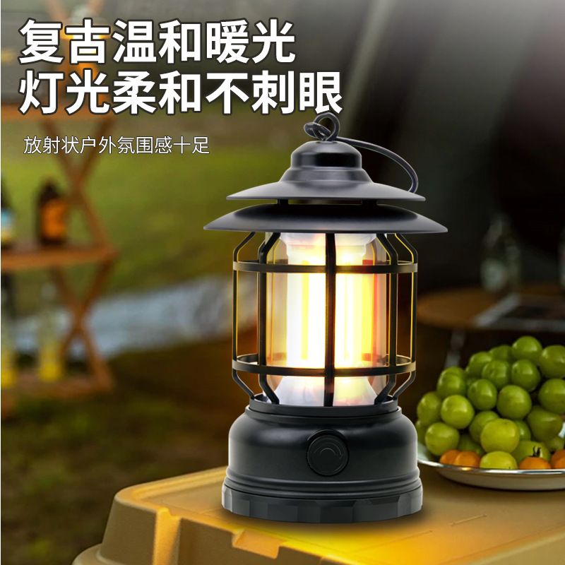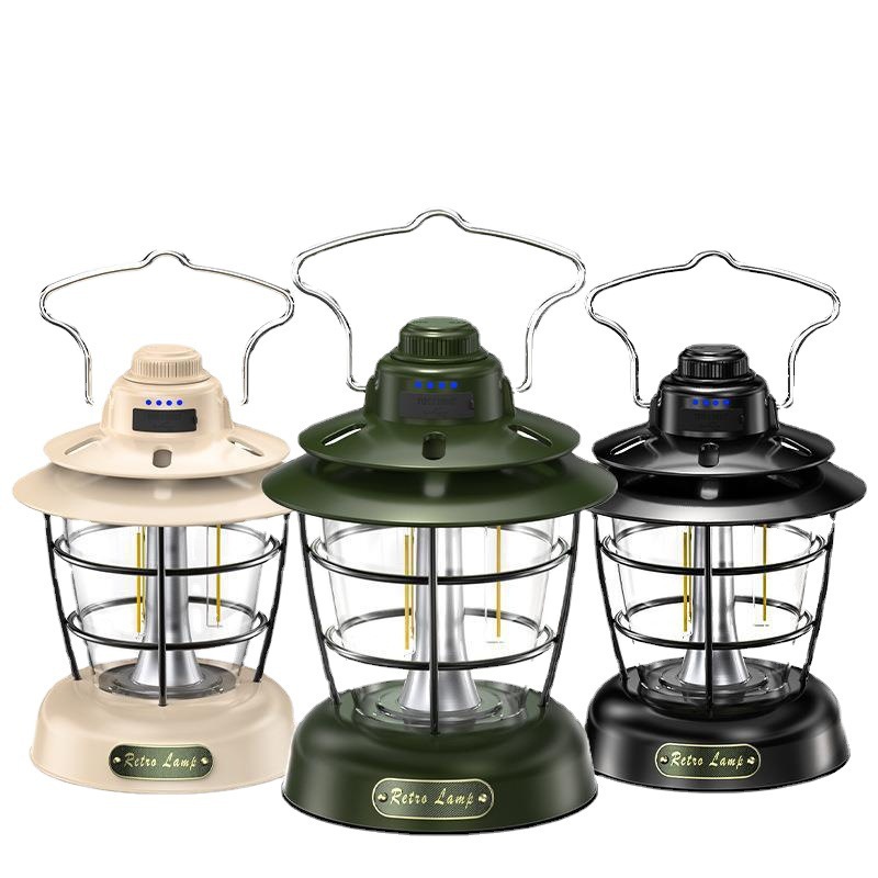 Lampu berkemah lintas batas, lentera lentera lentera tenda portabel luar ruangan, lampu berkemah retro multifungsi