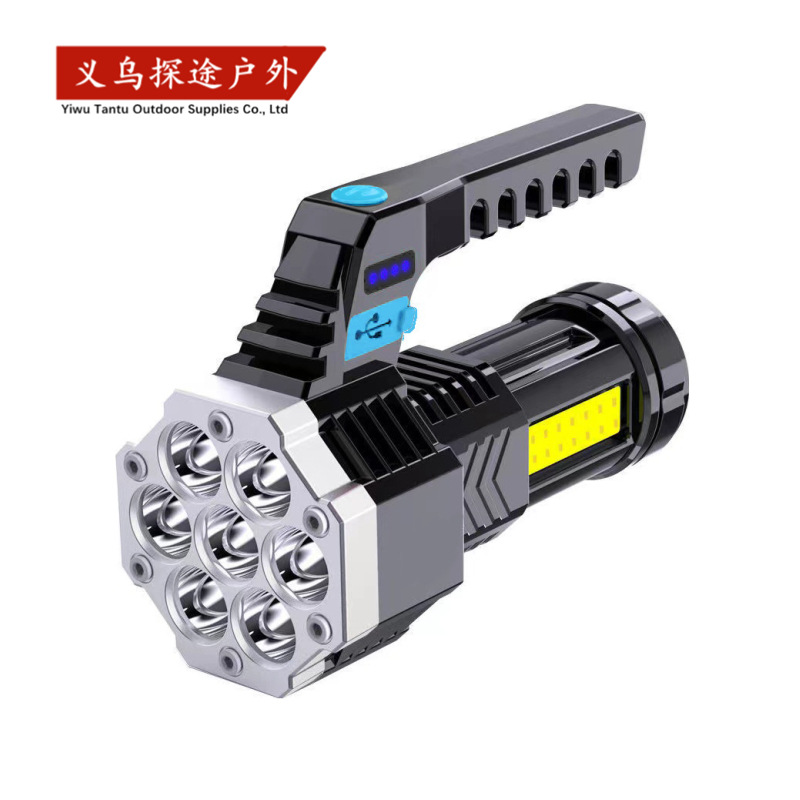 Lampu portabel lintas batas, cahaya kuat tujuh Inti lampu samping COB pengisian USB tampilan daya senter darurat portabel rumah tangga