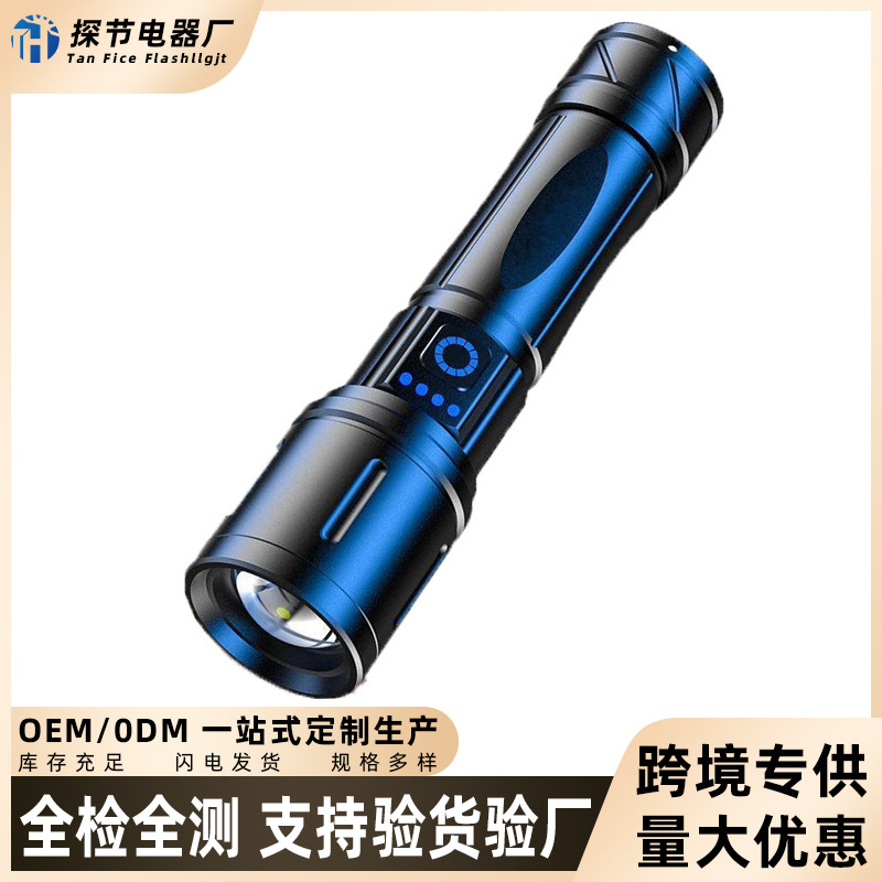 Lintas batas lampu LED kuat jarak jauh, cangkir P50/P70 senter genggam LED daya tinggi tampilan pengisian USB