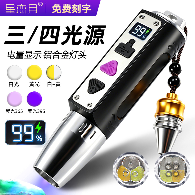 Jade senter identifikasi profesional cahaya kuat identifikasi Perhiasan jam tangan giok deteksi uang tembakau anggur Wenwan 365nm cahaya ungu