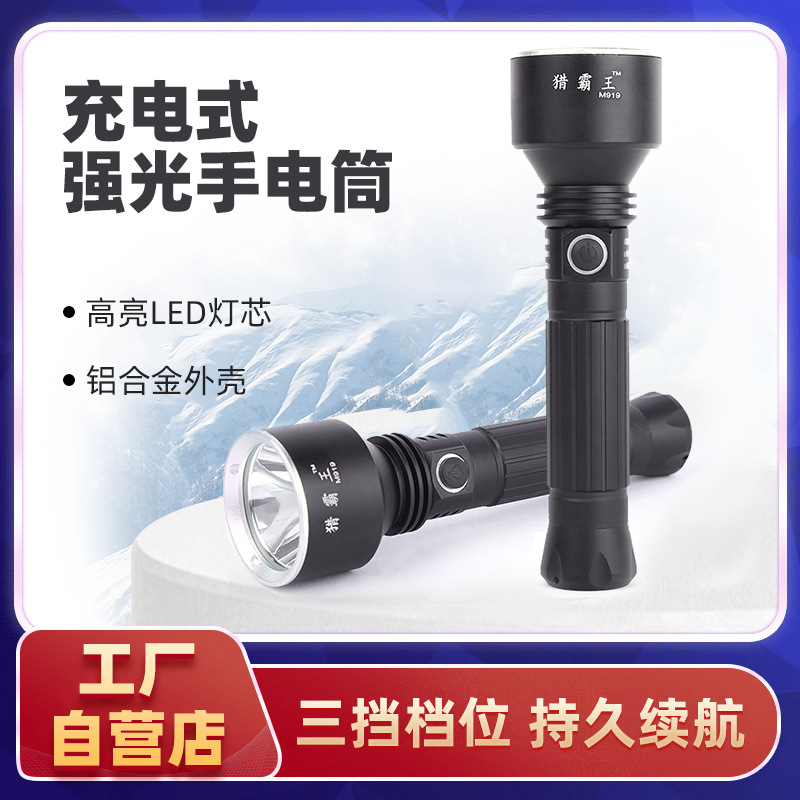 Pabrik grosir senter cahaya kuat LED tahan air luar ruangan berkemah mendaki mendaki berkendara malam senter aluminium Aloi isi ulang