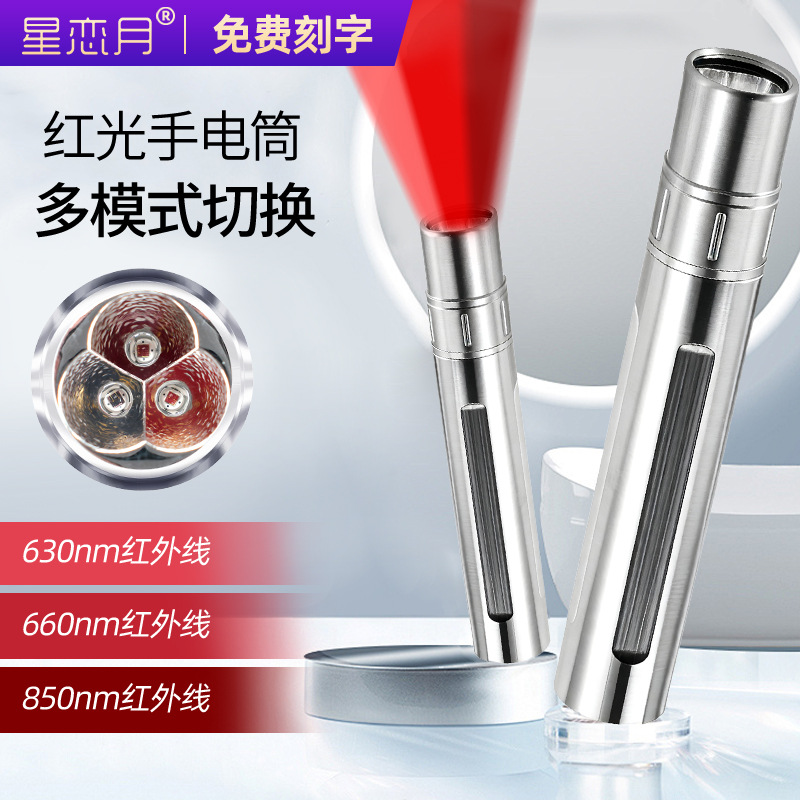 Pasokan lintas batas lampu merah lampu fisioterapi senter inframerah hewan peliharaan fisioterapi portabel isi ulang daya USB baja tahan karat