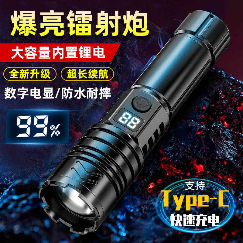 Amazon senter cahaya kuat laser putih strip neon baru senter daya tinggi tampilan listrik digital senter pencahayaan luar ruangan