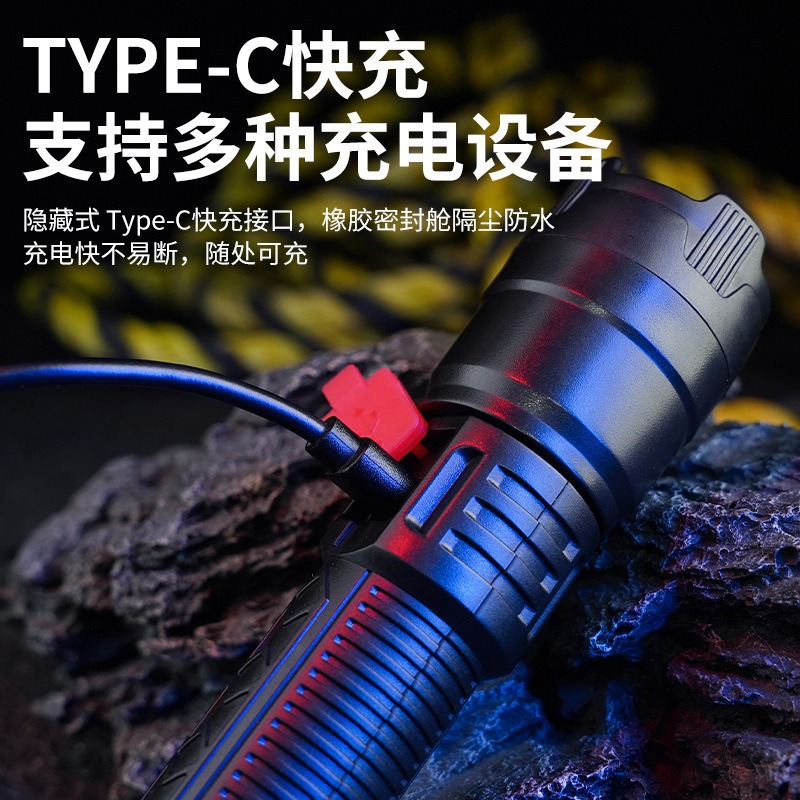 Senter led sangat terang, senter cahaya kuat plastik lintas batas, led USB dapat diisi ulang, super terang jarak jauh, rumah, luar ruangan, Senter uji coba, Penerangan genggam