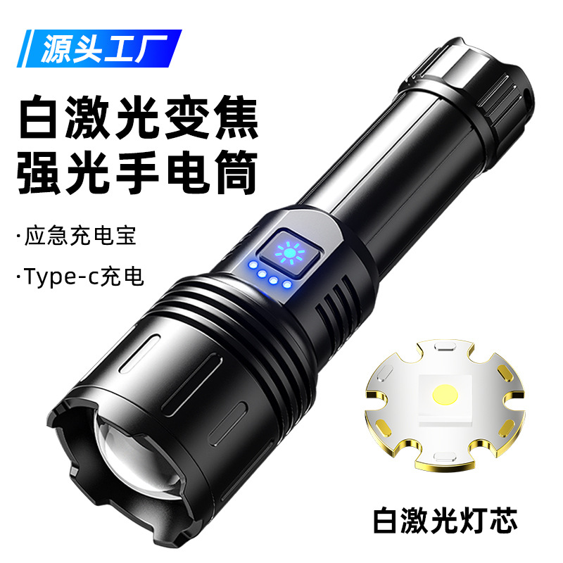 Senter laser Putih zoom teleskopik, cahaya kuat lintas batas jarak jauh super terang tahan lama dapat diisi ulang senter genggam