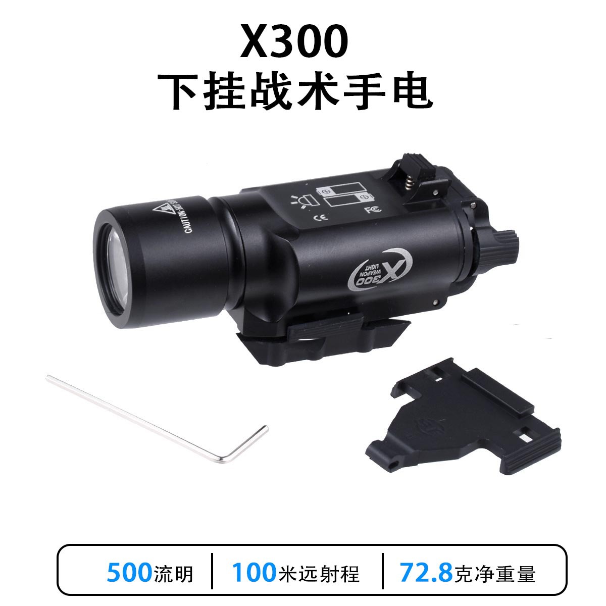 Perlengkapan luar ruangan aluminium Aloi X300 lebih rendah LED taktis yang kuat senter cahaya Glock senter gantung yang lebih rendah