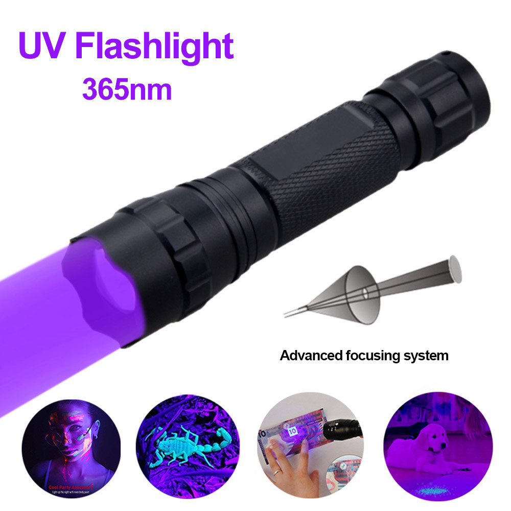 501B lampu ungu 395nm 365nm Senter UV detektor uang deteksi neon Senter LED paduan aluminium