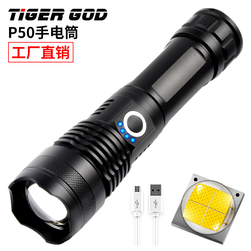 Senter LED lintas batas P50 P70, Senter LED Cahaya kuat tiga gigi jarak jauh zoom USB pengisian daya langsung baterai 26650