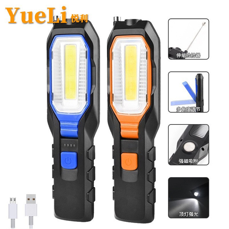 6302 lampu inspeksi mobil pengisian daya usb senter tahan jatuh darurat lampu kerja led kuat dengan kait magnet