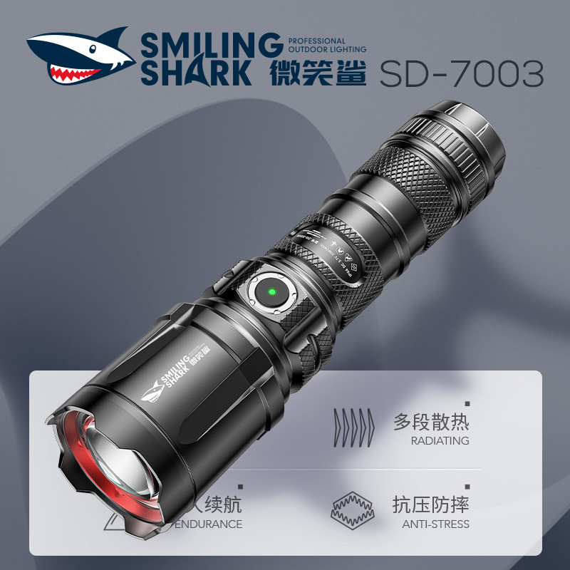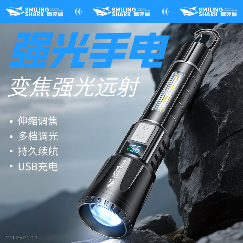 Hiu Tertawa Lampu Senter Cahaya Terang Jarak Jauh Zoom Luar Ruangan Senter Lampu Senter Paduan Aluminium