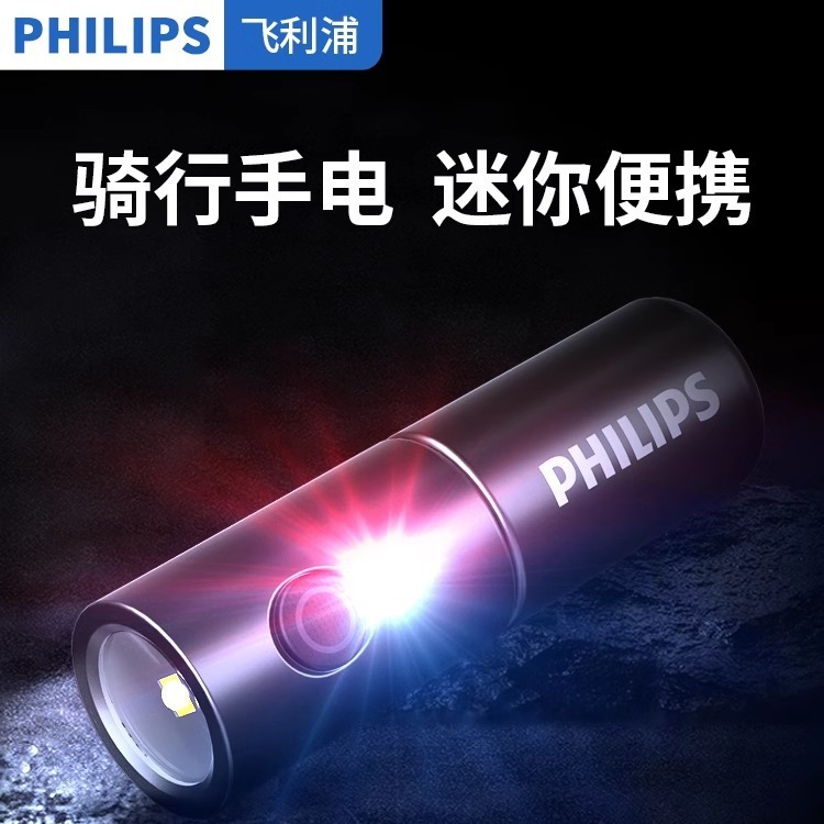 Senter mini Philips lampu kuat, lampu peringatan multifungsi pengisian daya portabel pencahayaan luar ruangan darurat