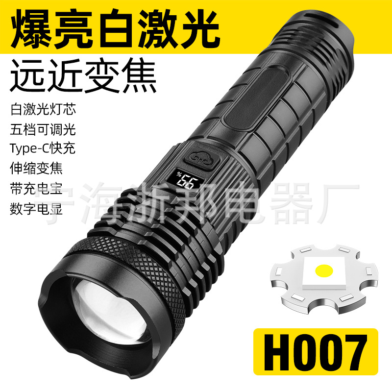 Tampilan Listrik Lintas Batas Luar Ruangan Luar Ruangan Cahaya Jauh Portabel Senter Multifungsi Laser Putih Pengisian Senter Cahaya Kuat