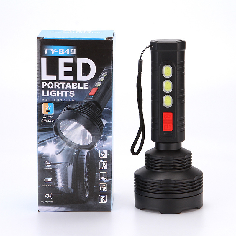Lampu senter portabel pengisian daya LED luar ruangan lampu darurat multi-fungsi patroli trekking tahan air lampu kuat kustom