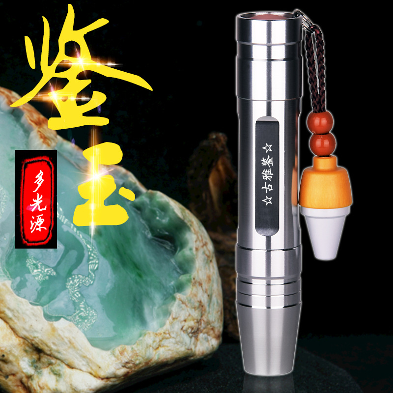Senter cahaya kuat giok ringan, tiga sumber cahaya kaliber kecil lilin lebah kristal Wenwan koleksi lampu deteksi agen neon