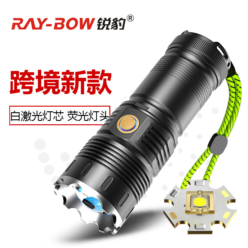 Senter laser putih lintas batas RuiBao, laser cannon ultra-terang, lampu sorot TYPE-C, lampu sorot zoom kelas atas untuk luar ruangan