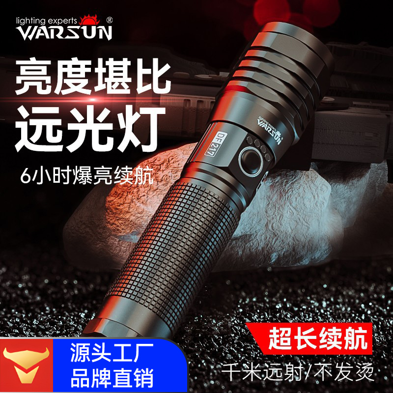 Walson manufacturer DF217 senter, lampu kuat dapat diisi ulang, Senter zoom portabel multifungsi jarak jauh luar ruangan