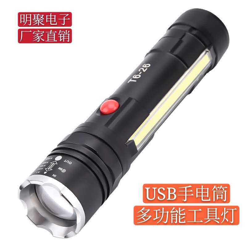 Cross-border T6 Senter USB kuat, lampu senter dapat diisi ulang lampu samping COB magnet alat lampu Pabrik rambut langsung