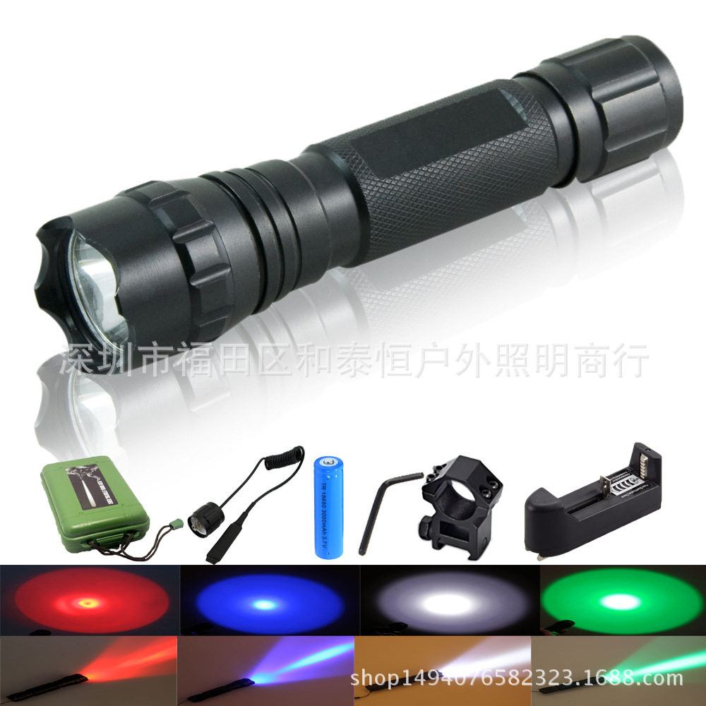 Cross-border senter multifungsi, penjualan laris 501B putih hijau merah biru ungu T6/L2 cahaya kuat multifungsi detektor uang pengisian luar ruangan