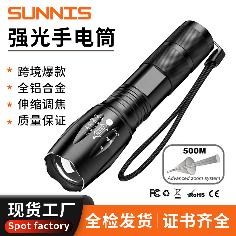 Temu senter LED lintas batas, power bank USB luar ruangan, senter cahaya kuat aluminium Aloi t6 pabrik grosir