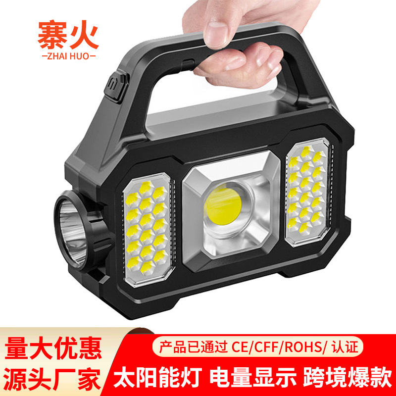 Lampu senter led kuat multifungsi, lampu surya portabel cahaya luar ruangan pengisian USB super terang cob
