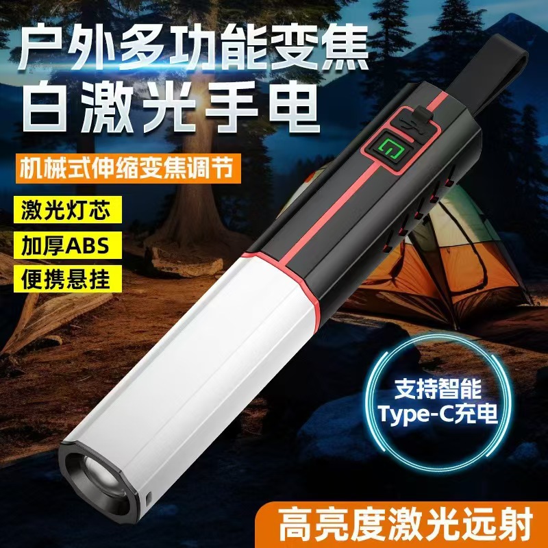 Senter laser Putih lintas batas cahaya kuat lampu sorot jarak jauh pengisian TYPE-C luar ruangan dengan keluaran senter led