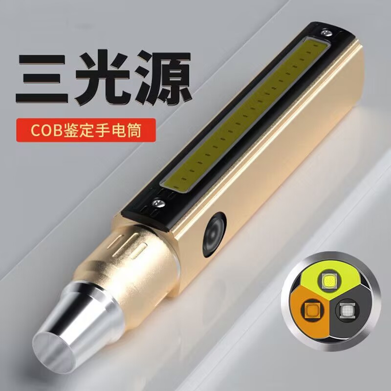 Senter giok kuat lintas batas, senter identifikasi cahaya super terang perhiasan uang detektor tiga sumber cahaya 365nm cahaya ungu