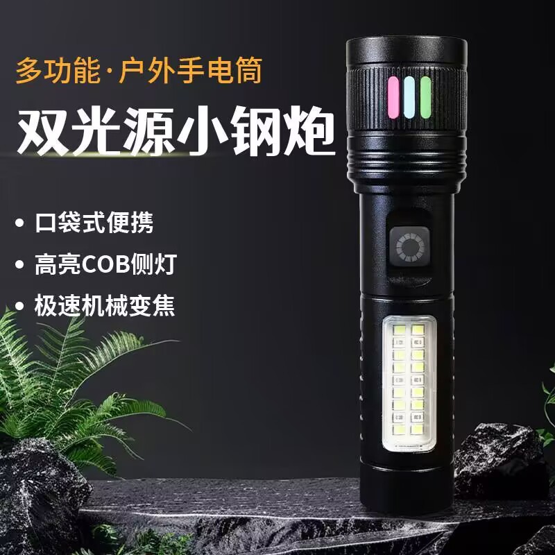 Senter LED fotografi luar ruangan, lampu senter empat warna zoom teleskopik baru lintas batas P50 kuat