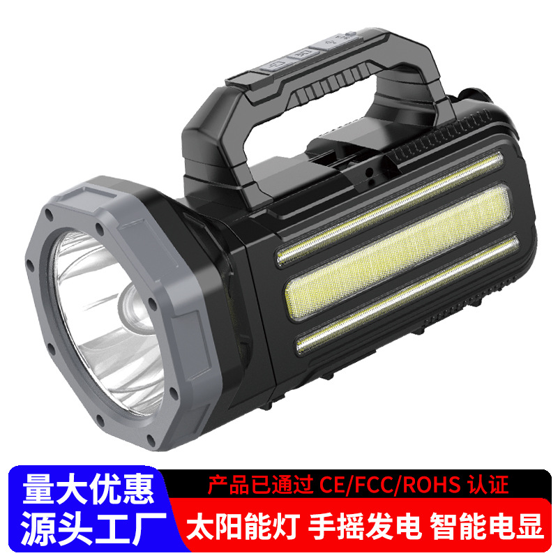 Lampu led portabel tenaga surya multifungsi, lampu berkemah luar ruangan tahan air dapat diisi ulang, tembakan panjang portabel, senter cahaya kuat COB
