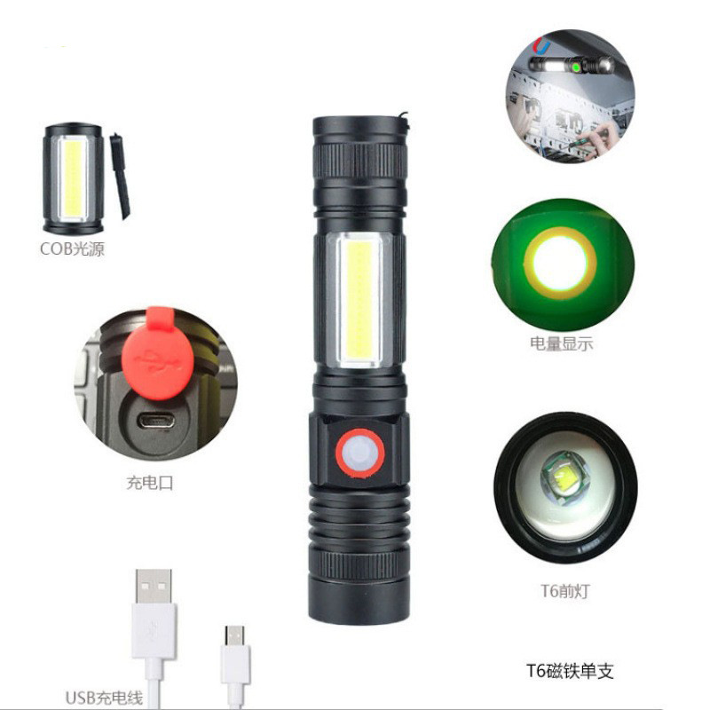 P50 + COB senter cahaya kuat USB dapat diisi ulang t6 magnet luar ruangan multi-fungsi LED senter COB lampu kerja