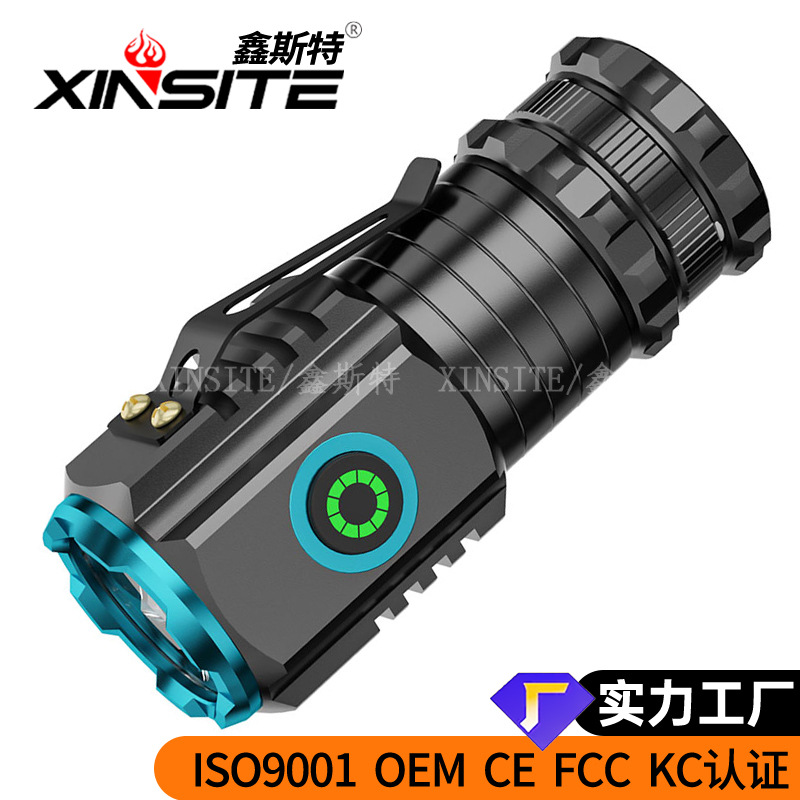Lintas batas senter jarak jauh, senter cahaya kuat jarak jauh mini portabel kecil luar ruangan multi-fungsi klip