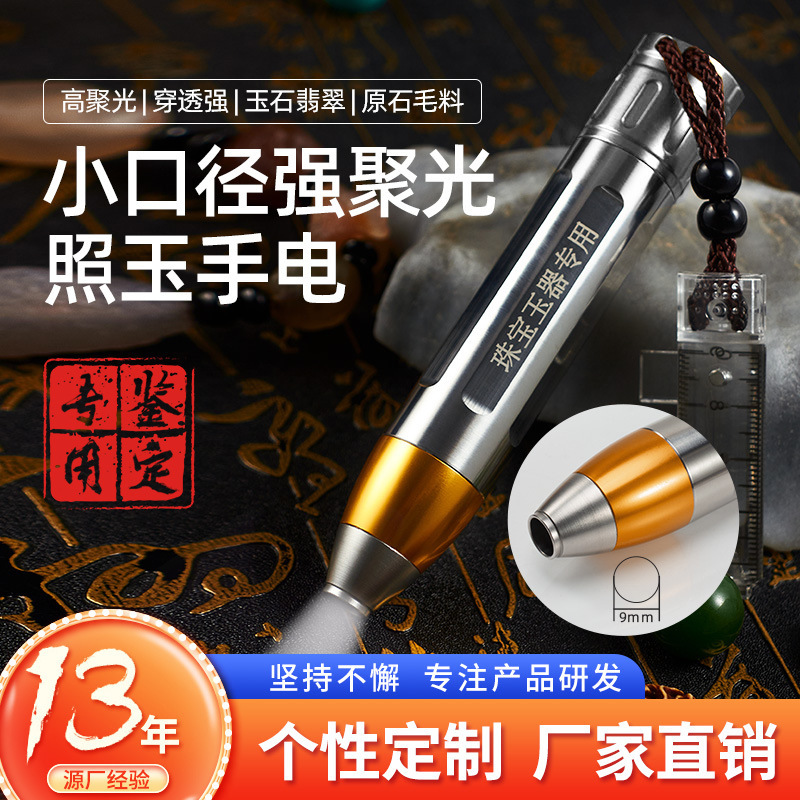 Senter Jade kaliber kecil cahaya kuning putih, senter identifikasi giok baja tahan karat perhiasan Jade