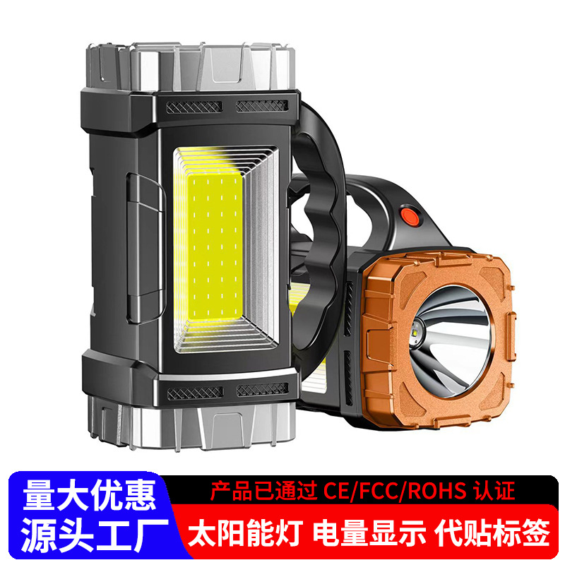 Senter LED tenaga surya, senter cahaya kuat lintas batas LED isi ulang dengan COB super terang jarak jauh luar ruangan pengisian harta karun