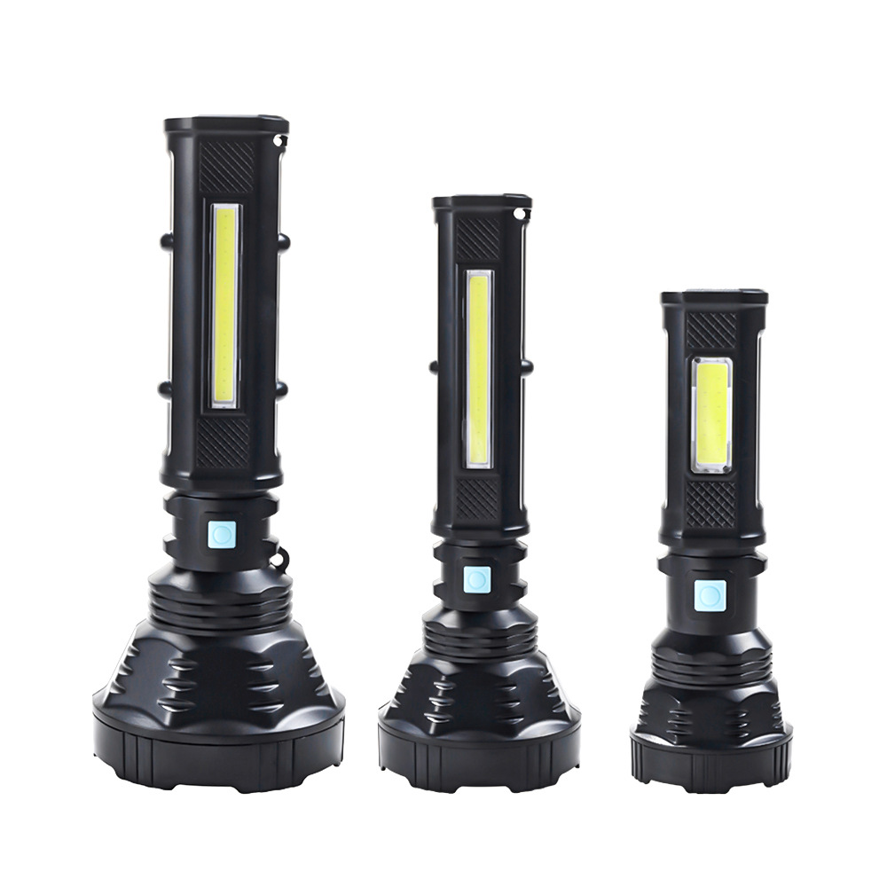 Senter LED Multifungsi, lintas batas P50 + COB tipe-c dapat diisi ulang remote zoom luar ruangan