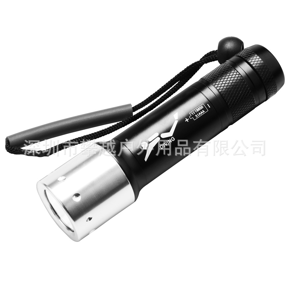 L2 senter selam laut dalam, senter selam T6 cahaya kuat lintas batas 26650 untuk menyelam di laut dalam, Senter selam bahan Aloi aluminium