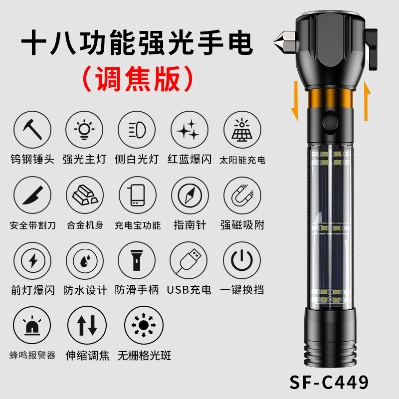Lampu senter keselamatan mobil, Multifungsi lampu senter luar ruangan alarm darurat api tenaga surya