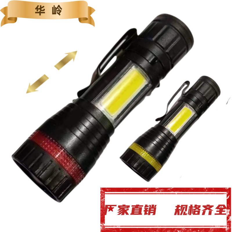 Cross-border senter kecil zoom teleskopik, cahaya samping COB + pengisian daya USB mini, cahaya kuat remote luar ruangan