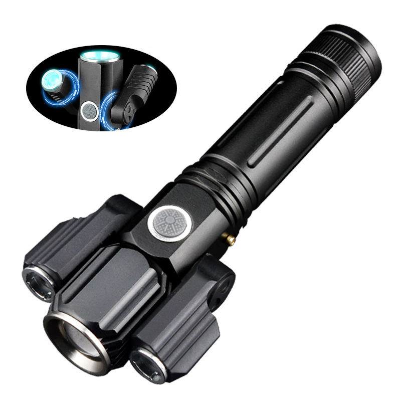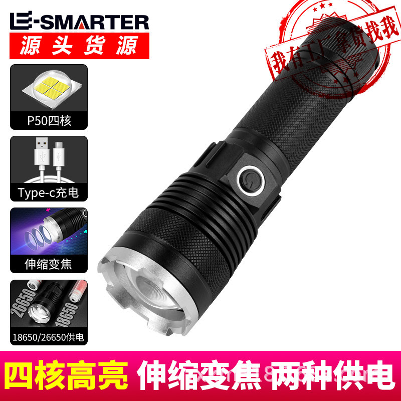 Senter cahaya kuat baru, tampilan daya USB lintas batas P50 senter teleskopik dapat diisi ulang XHP50 paduan aluminium