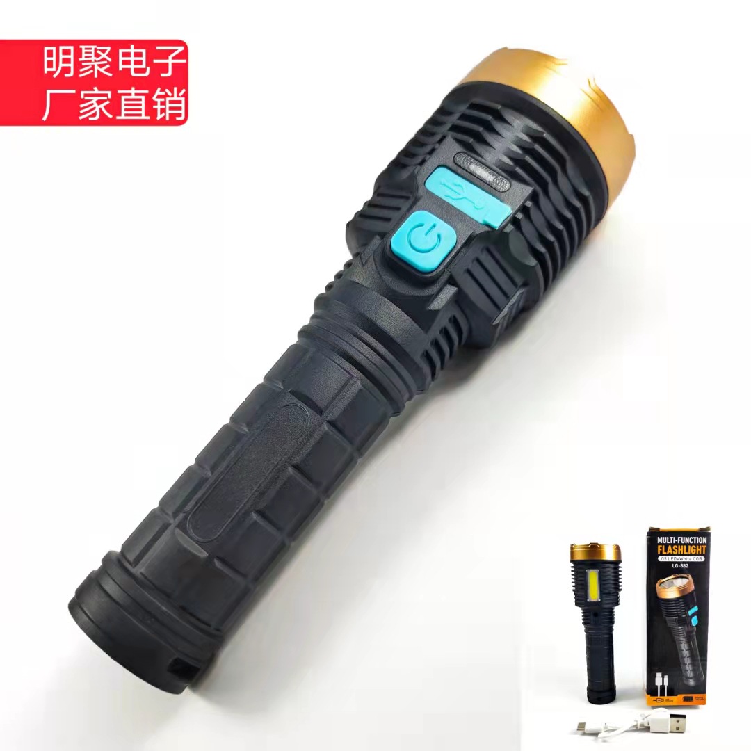 Grosir baru portabel cahaya kuat senter isi ulang super terang tembakan jauh luar ruangan multi-fungsi portabel dengan COB sisi cahaya