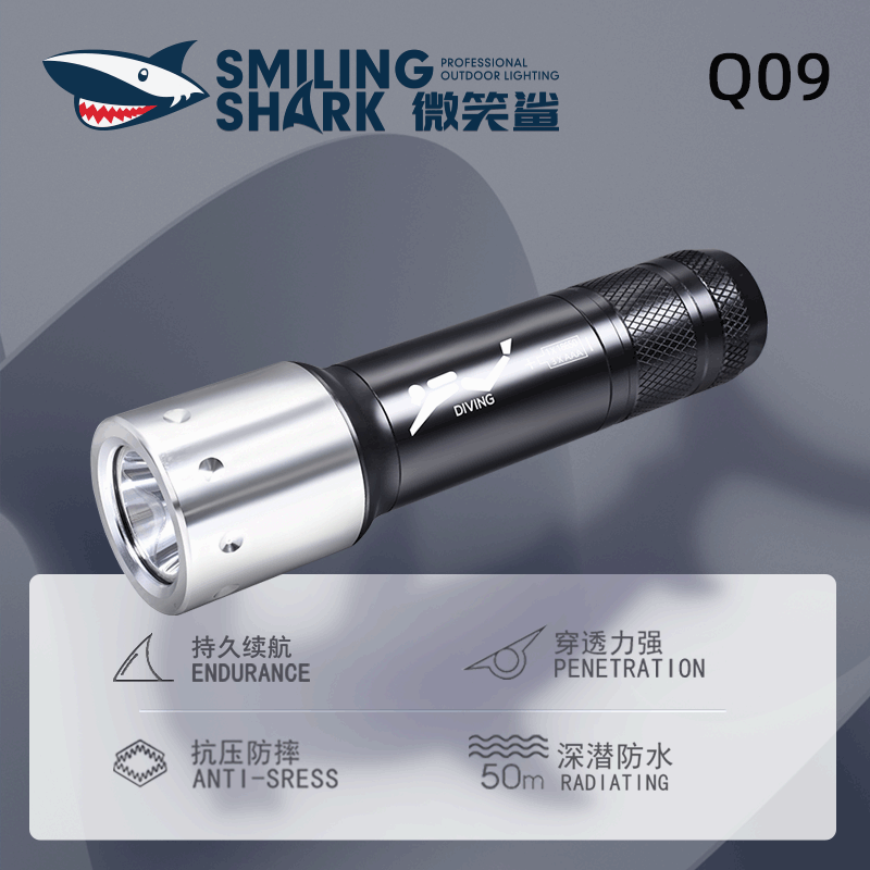 Senter elektrik, pencahayaan bawah air hiu tersenyum, senter listrik aluminium Jinqiang portabel IPX8 tahan air, Senter selam profesional