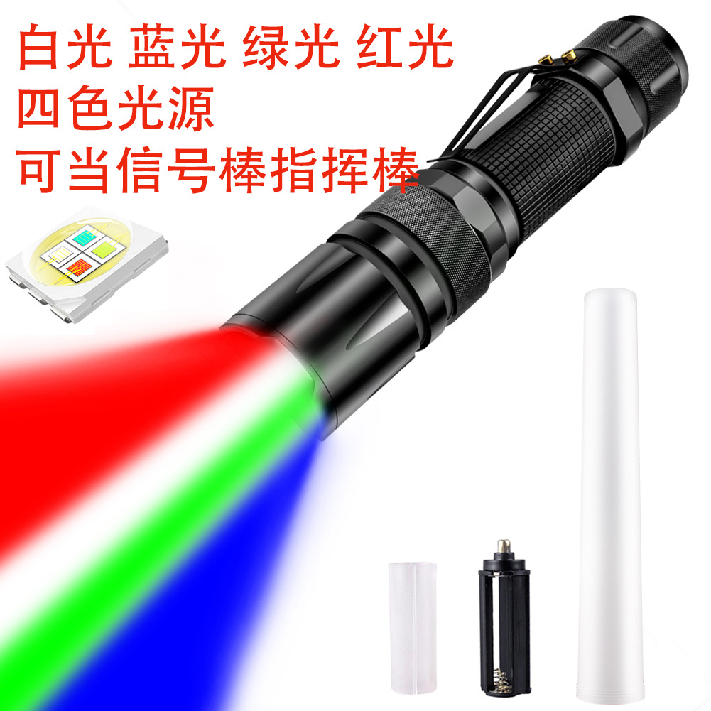 Senter empat dalam satu multifungsi, senter fokus empat sumber cahaya RGBW, Senter peringatan