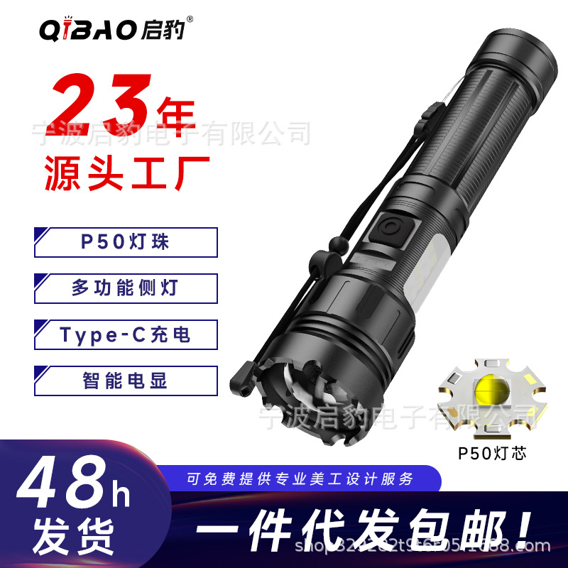 XHP50 senter luar ruangan cahaya kuat, lintas batas baru, pengisian daya cepat dengan tampilan daya output, senter lampu samping perbesaran