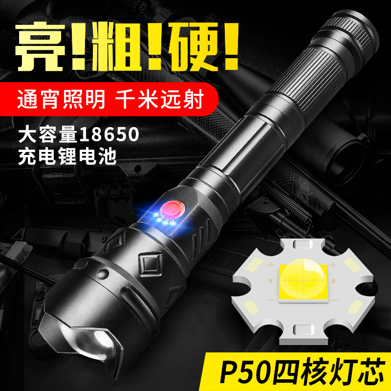 Senter super terang daya tahan lama, lampu kuat baru 2023, senter isi ulang daya tahan super terang, daya tahan lama, zoom tembakan jauh