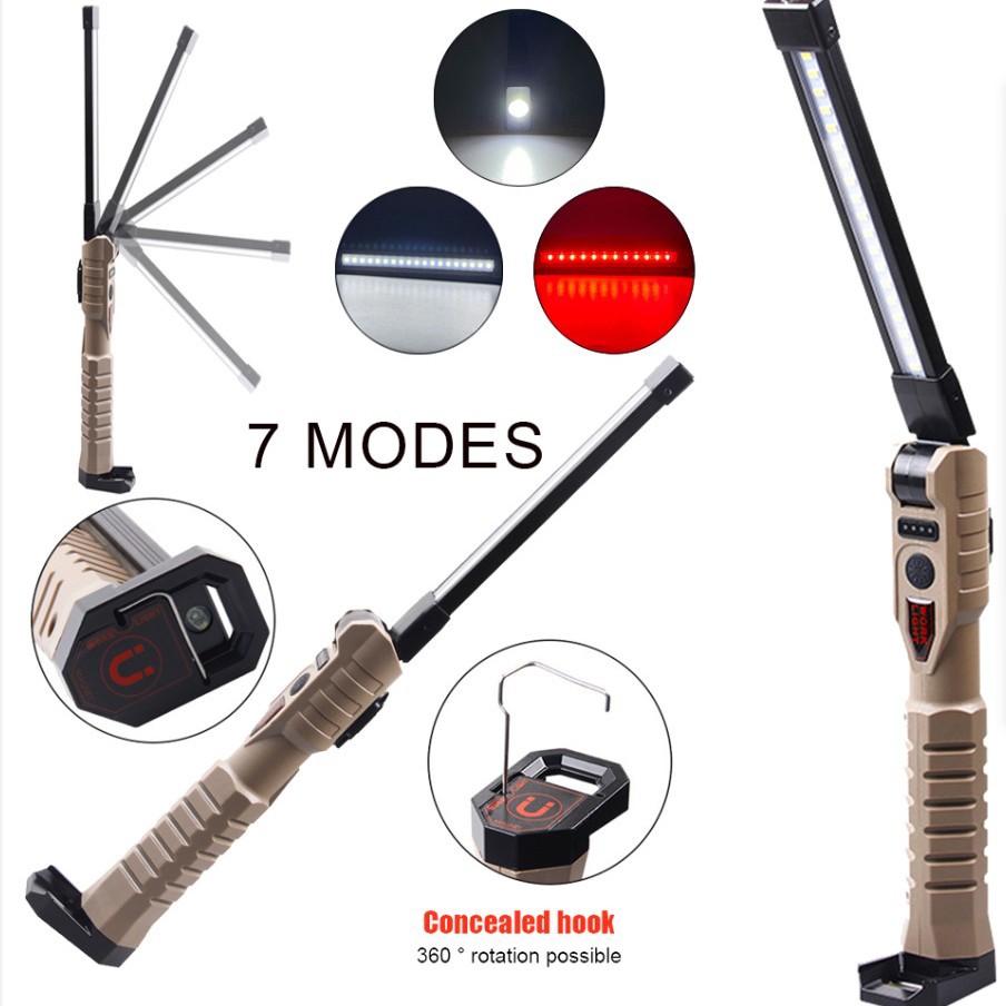 Lampu kerja lipat lintas batas, lampu perbaikan mobil dapat diisi ulang dengan magnet sisi ganda lampu merah putih senter darurat