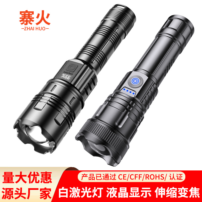 Lampu senter LED lintas batas, cahaya laser putih super terang jarak jauh dapat diisi ulang daya tinggi perbesaran pencahayaan
