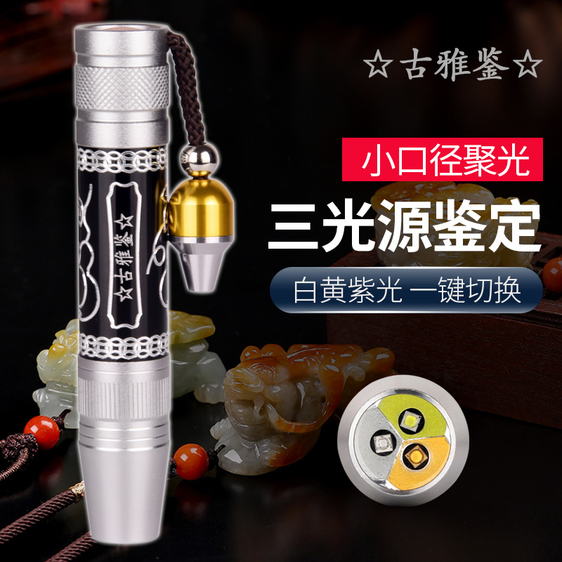 Senter cahaya kuat tiga sumber cahaya batu giok 365 cahaya ungu Identifikasi lilin lebah giok perhiasan lampu deteksi Amber