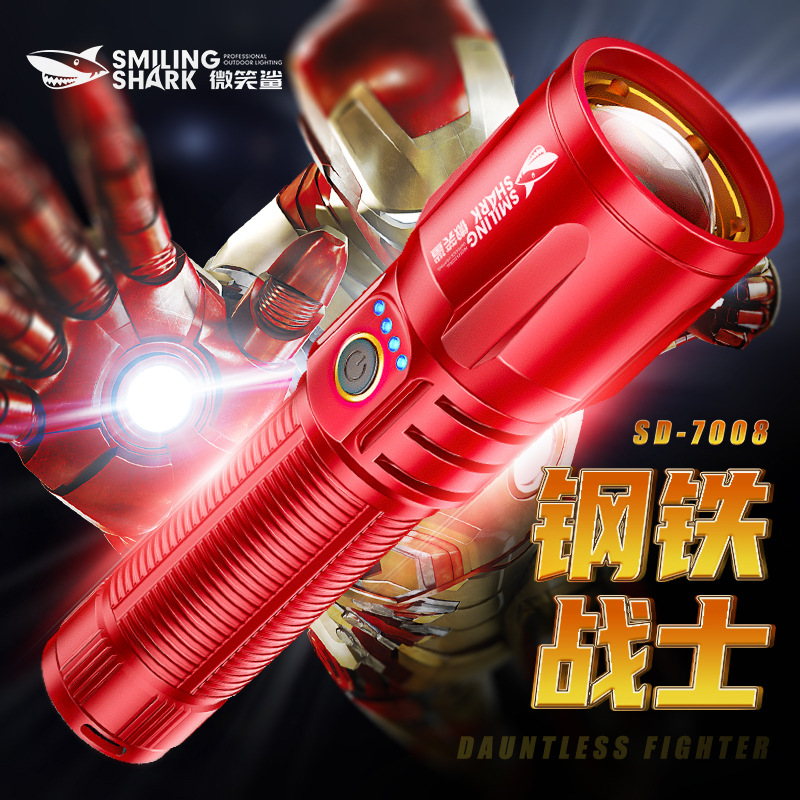 Senter laser Putih hiu tersenyum jarak jauh, Senter kapasitas besar terang pencarian luar ruangan patroli portabel cahaya kuat