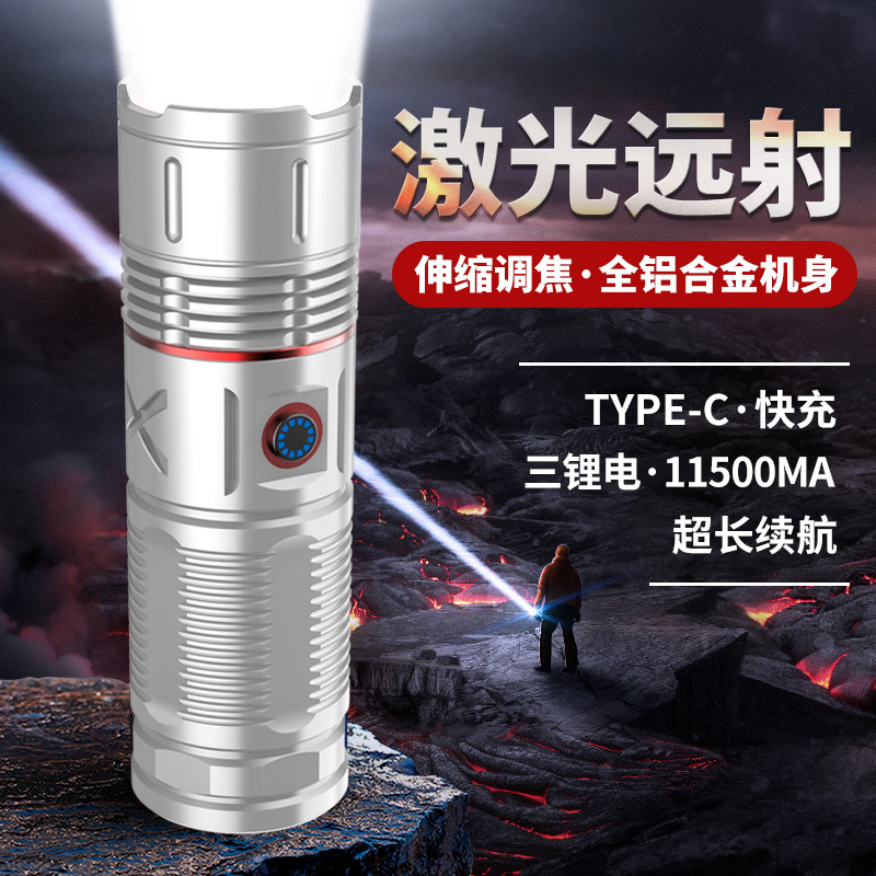Lintas Batas Produk Baru Jarak Jauh Lampu Senter LED Laser Lampu Senter Cahaya Kuat Super Terang Jarak Jauh Pengisian TYPE-C
