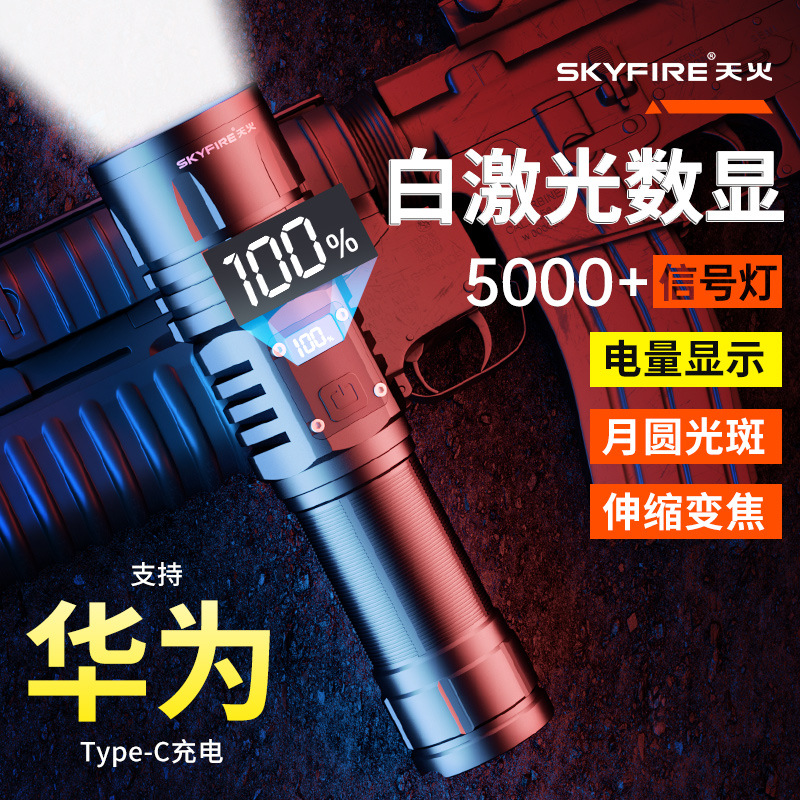 Sky fire senter cahaya kuat portabel, cahaya laser Putih Mata malaikat super terang luar ruangan tembakan jauh dapat diisi ulang cahaya kuat portabel rumah tangga