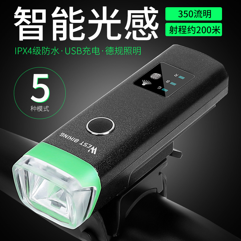 WEST BIKING lampu sorot sepeda gunung, senter depan sensor cahaya kuat untuk pengisian daya satu lampu
